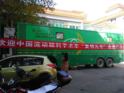 10月26日,中国流动眼科手术车“复明号”走进广水,启动该市2015年白内障复明工程。省残疾人康复中心副主任任小中、副市长刘荣等领导参加启动仪式并看望了医疗组专家。